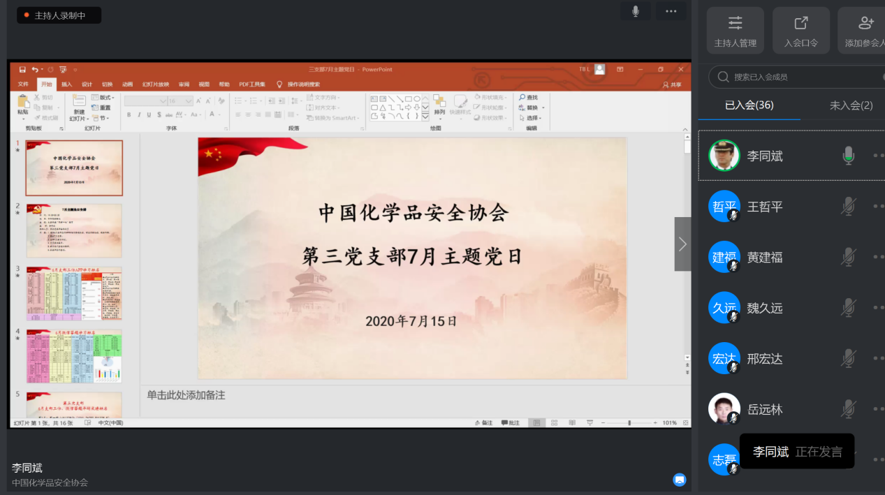 7月15日,協會第三黨支部以釘釘視頻會議的形式開展7月主題黨日。