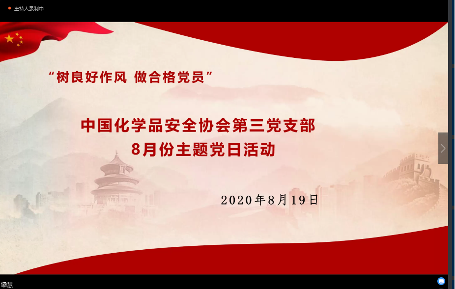8月19日,中國化學品安全協會第三黨支部通過視頻會議的形式,組織開展了8月主題黨日。