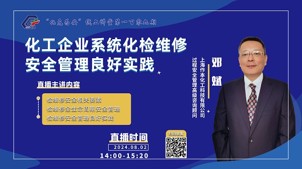 “化危為安”線上講堂第109期丨化工企業系統化檢維修安全管理良好實踐