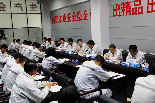 張明一行于8點10分首先參加了多倫煤化工公司安全生產例會,聽取了多倫公司當天安全生產情況。對多倫煤化工公司安全生產工作一直以來取得的成績給與了充分肯定;通報了此次檢查目的為了落實國務院和上級“吸取事故教訓開展隱患排查治理”的要求;總結分析了近期“5.31”、“6.02”、“6.03”三起重特大火災爆炸人身傷亡事故教訓;學習貫徹了6月4日李克強總理在國務院應急指揮中心視頻會上的重要指示精神和國家安監總局局長楊棟梁關于“6.03”事故調查情況的通報;認真總結、分析了多倫煤化工公司從基建生產以來發生的包括“4.8”外網斷電停車等多起事故教訓,指出多倫煤化工公司一路走來付出了艱辛的努力,仍然暴露出許多問題,要好好總結吸取教訓。