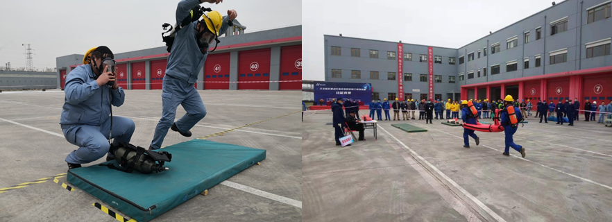 競賽設(shè)置50米滅油盆火、接消火栓40米射水打靶、佩戴空氣呼吸器40米疏散救人、火場逃生四個(gè)科目,涉及初期火災(zāi)撲救、個(gè)人防護(hù)裝備穿戴、現(xiàn)場急救、疏散逃生等多個(gè)應(yīng)急救援技能,競賽內(nèi)容貼近?;髽I(yè)一線崗位救援實(shí)際,有效檢驗(yàn)企業(yè)員工的綜合應(yīng)急處置能力。