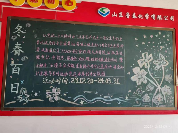 為深入貫徹集團公司統一部署,扎實做好歲末年初和冬春兩季的安全生產工作,確保2024年各項工作開好頭、起好步,12月20日,山東魯泰化學有限公司啟動“冬春百日安全競賽”活動。本次活動到2024年3月31日結束。