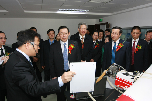 11月5日,中國安全生產科學研究院召開建院30周年座談會。圖為國家安全監管總局局長駱琳等領導考察該院重大危險源檢測監控實驗室。 |
