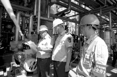 圖 公司員工正在高溫下巡檢 連日來,河南持續(xù)高溫和暴雨天氣,給化工企業(yè)安全生產(chǎn)帶來極大考驗。中原石化強化安全制度落實,增加巡檢頻次,同時加大隱患排查力度并及時整治,