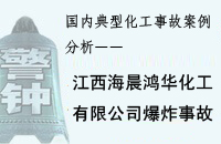 2012年5月16日上午7時(shí)45分左右,江西海晨鴻華化工有限公司(以下簡(jiǎn)稱鴻華公司)發(fā)生一起爆炸事故,造成3人死亡,2人受傷。 江西海晨鴻華化工有限公司位于江西省吉安市新干縣鹽化工