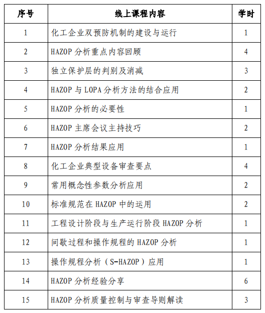 1.學員參加線下培訓之前需完成HAZOP主席線上課程的學習。