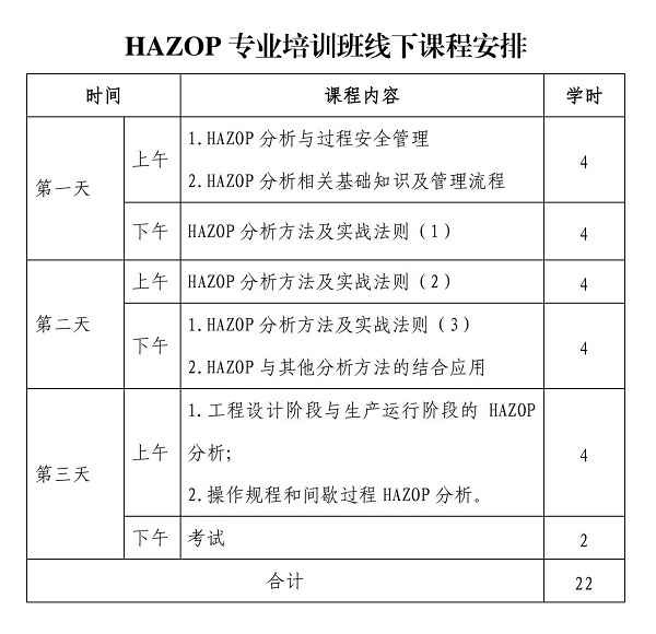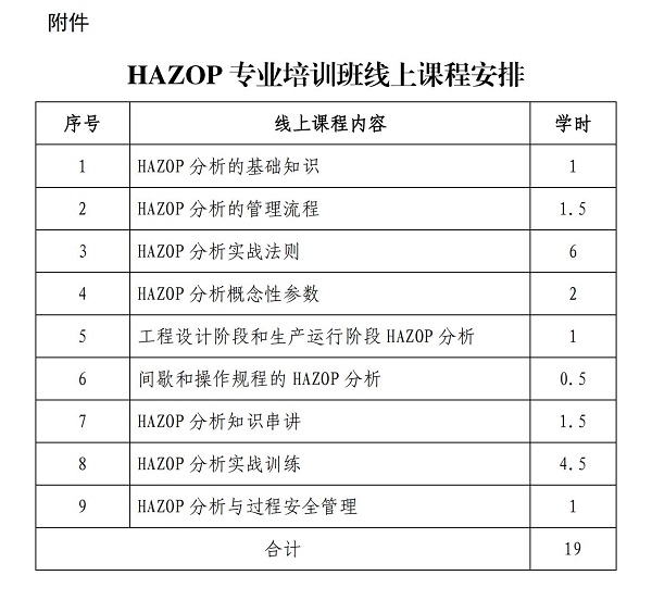 附件:HAZOP主席培訓(xùn)課程安排