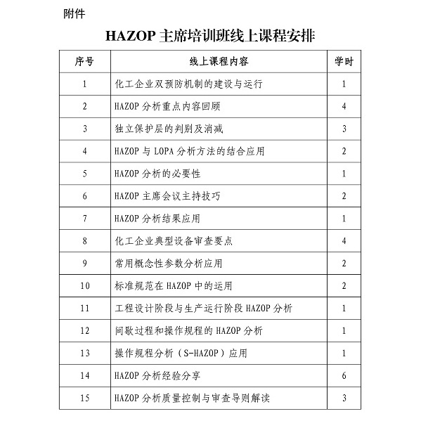 1.學員參加線下培訓之前需完成HAZOP主席線上課程的學習。
