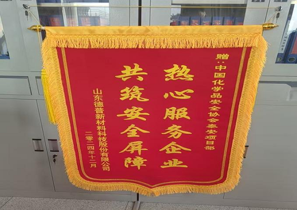 近日,中國化學品安全協會泰安項目部收到了一份特別的禮物——來自山東德普新材料科技股份有限公司的一面感謝錦旗。