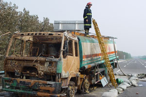 從河北邯鄲駛往湖南運輸二硫化碳的事故車輛 |