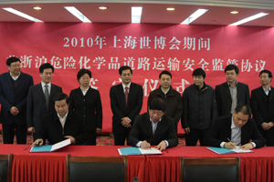 3月5日,上海市艾寶俊副市長、江蘇省史和平副省長、浙江省金德水副省長代表三省(市)安委會簽署了《2010年上海世博會期間蘇浙滬危險化學品道路運輸安全監管協議》。 |