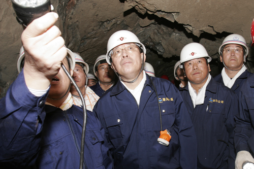 在中國黃金集團(tuán)海溝金礦,駱琳來到-320米井下作業(yè)現(xiàn)場和生產(chǎn)調(diào)度室,詳細(xì)了解開采、運(yùn)輸、選礦、提煉、尾礦排放等生產(chǎn)過程,以及礦井支護(hù)管理、水害防治、火藥管理、尾礦庫安全監(jiān)控等情況。駱琳指出,海溝金礦作為一個(gè)老礦和中央企業(yè),要在貫徹落實(shí)國務(wù)院《通知》精神、落實(shí)企業(yè)安全生產(chǎn)主體責(zé)任方面,發(fā)揮好骨干表率作用,要進(jìn)一步加大安全投入,完善安全設(shè)施,提高礦山生產(chǎn)機(jī)械化、自動(dòng)化水平;深刻吸取各地發(fā)生的事故教訓(xùn),進(jìn)一步嚴(yán)格安全管理,嚴(yán)防冒頂、跑車、火災(zāi)、水災(zāi)、火藥爆炸等事故;進(jìn)一步加強(qiáng)尾礦庫安全監(jiān)控,積極推行干式排放等技術(shù)措施,有效防范潰壩垮壩等事故。