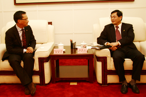 10月12日上午,國家安全生產監督管理總局副局長孫華山在京接見美國陶氏化學公司負責亞太地區生產及工程事務的副總裁何百川先生一行。
