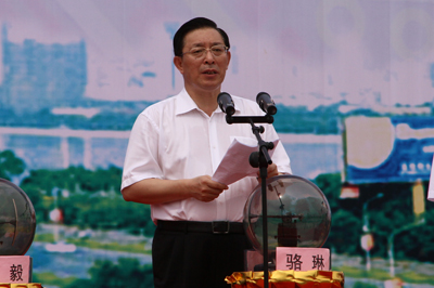 廣西壯族自治區黨委常委、南寧市委書記車榮福在“安全生產萬里行”啟動儀式上發表致辭。 |