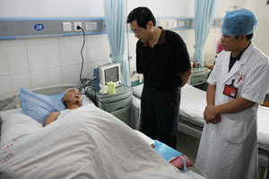 8月27日上午,國家安全監(jiān)管總局副局長孫華山前往醫(yī)院看望慰問傷員。 |