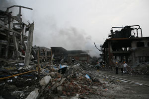 8月27日清晨,廣維化工股份有限公司“8.26”爆炸事故現(xiàn)場 |