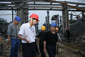 經(jīng)過一夜奔波,8月27日清晨6時,孫華山一行到達(dá)位于廣西河池宜州市西郊的廣維化工股份有限公司,在自治區(qū)副主席楊道喜的陪同下,詳細(xì)查看了爆炸事故現(xiàn)場,聽取了當(dāng)?shù)卣坝嘘P(guān)部門負(fù)責(zé)人關(guān)于事故經(jīng)過、現(xiàn)場處置、人員疏散等有關(guān)情況的匯報。據(jù)了解,廣維集團(tuán)有限責(zé)任公司由原國家紡織部投資,始建于1971年, 現(xiàn)有廣維化工股份有限公司等兩個主要控股子公司。2008年8月26日6時45分,廣維化工股份有限公司發(fā)生爆炸事故,爆炸引發(fā)的火災(zāi)導(dǎo)致車間內(nèi)裝有甲醇、乙炔、醋酸乙烯等易燃易爆物品的儲罐發(fā)生爆炸。目前,事故已造成17人死亡,3人失蹤,60人受傷住院治療(其中6人傷勢嚴(yán)重)。事故還造成周圍3公里范圍內(nèi)18個村屯和廣維集團(tuán)生活區(qū)的11500名群眾緊急疏散。目前,事故已得到控制,事故原因正在調(diào)查中。