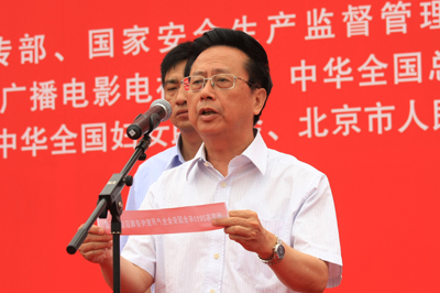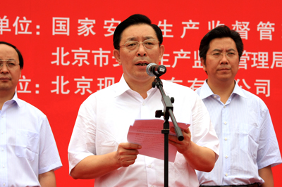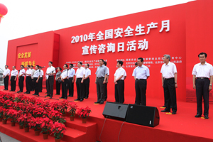 全國(guó)人大常委會(huì)副委員長(zhǎng)陳昌智宣布2010年全國(guó)“安全生產(chǎn)月”宣傳咨詢?nèi)栈顒?dòng)開(kāi)始。安全監(jiān)管總局局長(zhǎng)駱琳和北京市人民政府副市長(zhǎng)茍仲文分別致辭。安全監(jiān)管總局副局長(zhǎng)楊元元主持活動(dòng)儀式。