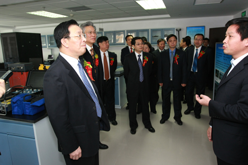 11月5日,中國安全生產科學研究院召開建院30周年座談會。圖為國家安全監管總局局長駱琳等領導考察該院重大危險源檢測監控實驗室。 |